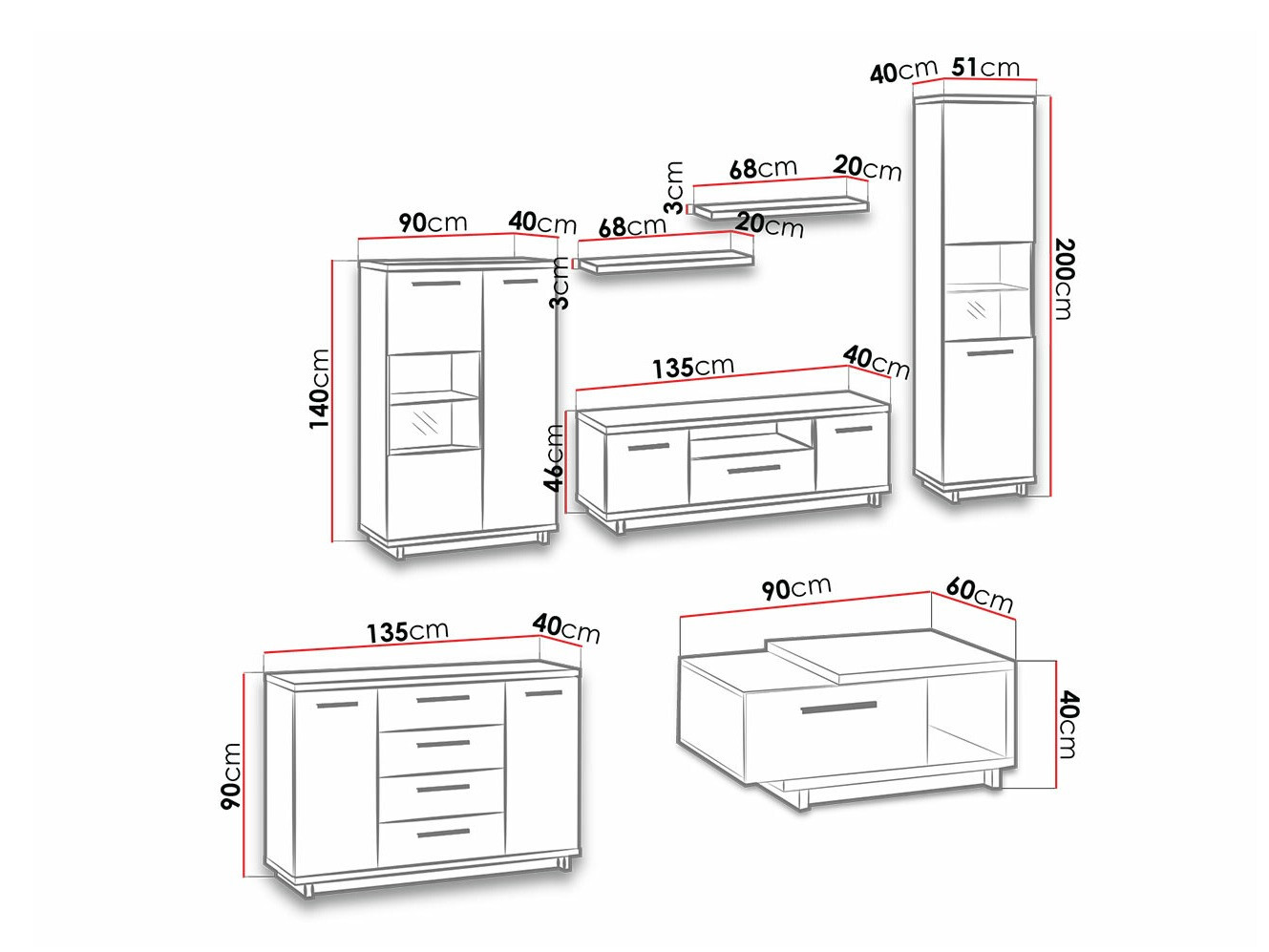 Bij het zoeken naar een meubel voor uw woning is het belangrijk om de harmonie in het interieur te bewaren. Als u van plan bent om zelf een huisontwerper te worden, zullen meubelcollecties een echte redding zijn. Meubelcollecties zullen u helpen om zonder veel moeite een solide interieur te creëren. Deze meubelcollectie biedt meubels voor de woon- en slaapkamer. Modern design en elegante lijnen vullen elkaar aan waardoor een perfecte combinatie ontstaat. De collectie valt op door de warme kleuren en houtpatronen. Matzwarte panelen passen bij eikenhouten fronten. Deze combinatie van kleuren vult elkaar aan en benadrukt de vorm van de meubels. In de vitrines wordt gehard glas gebruikt, dat resistenter is dan gewoon glas. Een bed met een exclusief ontwerp wordt het hoogtepunt van de slaapkamer. Zacht hoofdbord, bedlinnen box en een gashefmechanisme, alles wat u nodig heeft voor uw perfecte rust. De randen van de meubels uit deze collectie zijn beschermd met afwerkband, dat gebruikt wordt om de zijkanten van de panelen te beschermen. Maak u geen zorgen over de integriteit van het interieur en creëer een gezellig interieur van individuele meubels of kies uit meubelsets.