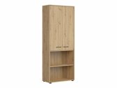 Als je op zoek bent naar meubilair voor een functioneel kantoor - dan is deze collectie voor jou bedoeld. De "Artisan" eiken en zwarte kleurencombinatie voegen moderniteit toe aan het meubilair. De minimalistische zwarte kunststof handgrepen passen perfect in het ontwerp. De meubels in de collectie zijn gemaakt van gelamineerde spaanplaat met een krasbestendig oppervlak. Door deze beschermlaag zijn de meubels niet alleen bestand tegen krassen, maar ook beter beschermd tegen vocht of vlekken. Het in de meubelen ingebouwde geruisloze sluitmechanisme zal de gebruikerservaring verder verbeteren en zorgen voor het geruisloos openen en sluiten van deuren en laden. Het meubel heeft zowel open als gesloten opbergruimtes. Hierdoor kunnen persoonlijke bezittingen worden opgeborgen op zichtbare planken of verborgen achter deuren. De collectie maakt gebruik van warmtebehandeld, gehard matglas. De weerstand ervan is 5-6 keer hoger dan die van gewoon, thermisch onbehandeld glas. Het glas wordt gevormd door een zwart aluminium frame. De planken van de collectie zijn universeel. Tijdens de montage kan worden bepaald in welke richting de deur wordt geopend. De ladeblokken hebben wieltjes in plaats van poten, waardoor het verplaatsen van meubels in de kamer zeer eenvoudig en gemakkelijk wordt. De lock-in planken zorgen ervoor dat persoonlijke spullen nog veiliger kunnen worden opgeborgen. De basis van de bureaus van de collectie is gemaakt van een zwart metalen frame dat voor stabiliteit zorgt. Voor wie een functioneel bureau zoekt, biedt de collectie bureaus met een elektrisch hoogte verstelmechanisme. Met behulp van een paar knoppen verandert de hoogte van de tafel, zodat je nog comfortabeler en ergonomischer je werk kunt doen. Met functionele en universele meubels wordt het inrichten van een kantoorruimte een plezier.