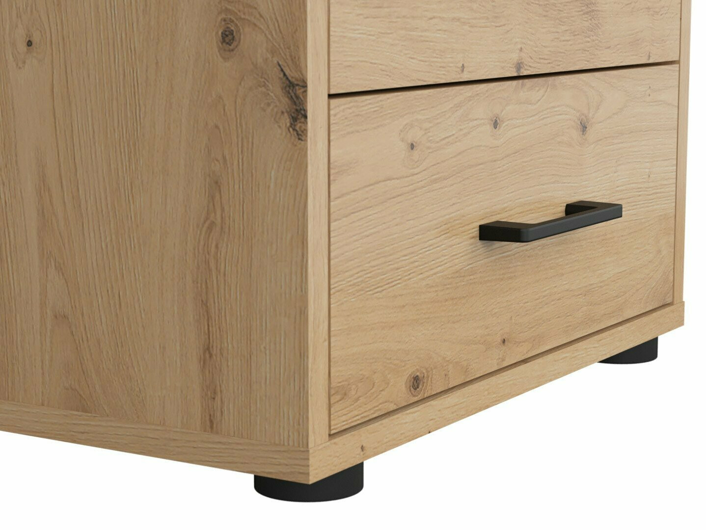 Als je op zoek bent naar meubilair voor een functioneel kantoor - dan is deze collectie voor jou bedoeld. De "Artisan" eiken en zwarte kleurencombinatie voegen moderniteit toe aan het meubilair. De minimalistische zwarte kunststof handgrepen passen perfect in het ontwerp. De meubels in de collectie zijn gemaakt van gelamineerde spaanplaat met een krasbestendig oppervlak. Door deze beschermlaag zijn de meubels niet alleen bestand tegen krassen, maar ook beter beschermd tegen vocht of vlekken. Het in de meubelen ingebouwde geruisloze sluitmechanisme zal de gebruikerservaring verder verbeteren en zorgen voor het geruisloos openen en sluiten van deuren en laden. Het meubel heeft zowel open als gesloten opbergruimtes. Hierdoor kunnen persoonlijke bezittingen worden opgeborgen op zichtbare planken of verborgen achter deuren. De collectie maakt gebruik van warmtebehandeld, gehard matglas. De weerstand ervan is 5-6 keer hoger dan die van gewoon, thermisch onbehandeld glas. Het glas wordt gevormd door een zwart aluminium frame. De planken van de collectie zijn universeel. Tijdens de montage kan worden bepaald in welke richting de deur wordt geopend. De ladeblokken hebben wieltjes in plaats van poten, waardoor het verplaatsen van meubels in de kamer zeer eenvoudig en gemakkelijk wordt. De lock-in planken zorgen ervoor dat persoonlijke spullen nog veiliger kunnen worden opgeborgen. De basis van de bureaus van de collectie is gemaakt van een zwart metalen frame dat voor stabiliteit zorgt. Voor wie een functioneel bureau zoekt, biedt de collectie bureaus met een elektrisch hoogte verstelmechanisme. Met behulp van een paar knoppen verandert de hoogte van de tafel, zodat je nog comfortabeler en ergonomischer je werk kunt doen. Met functionele en universele meubels wordt het inrichten van een kantoorruimte een plezier.