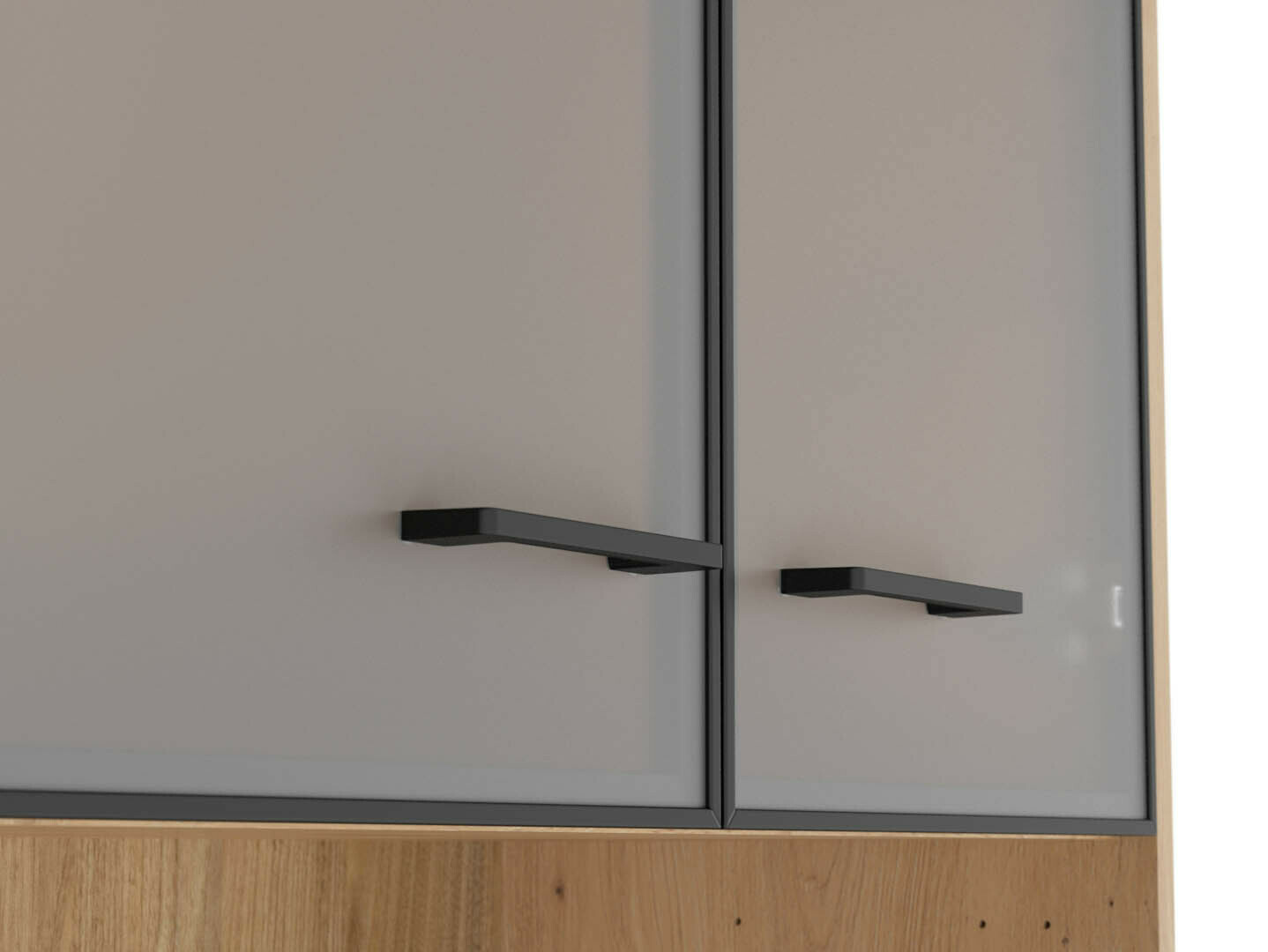 De "Artisan" eiken en zwarte kleurencombinatie voegen moderniteit toe aan het meubilair. De minimalistische zwarte kunststof handgrepen passen perfect in het ontwerp. De meubels in de collectie zijn gemaakt van gelamineerde spaanplaat met een krasbestendig oppervlak. Door deze beschermlaag zijn de meubels niet alleen bestand tegen krassen, maar ook beter beschermd tegen vocht of vlekken. Het in de meubelen ingebouwde geruisloze sluitmechanisme zal de gebruikerservaring verder verbeteren en zorgen voor het geruisloos openen en sluiten van deuren en laden.