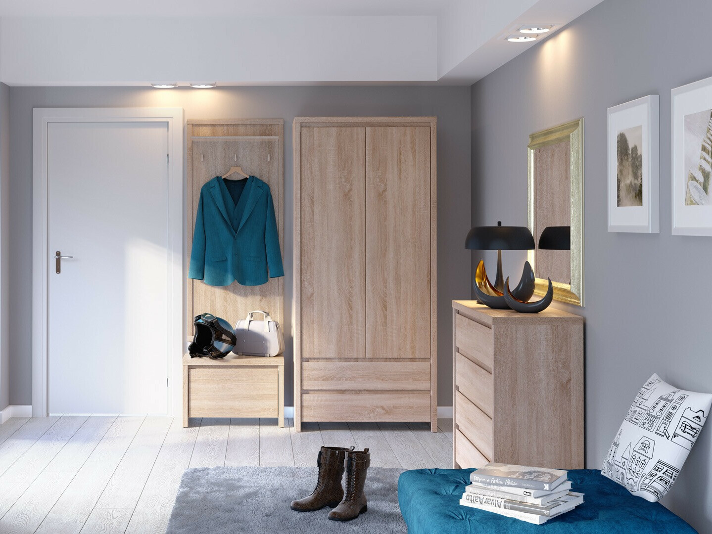 Het is net als op de foto, het formaat past net bij ons in de hal, hoewel je er niet veel jassen op kunt zetten.
