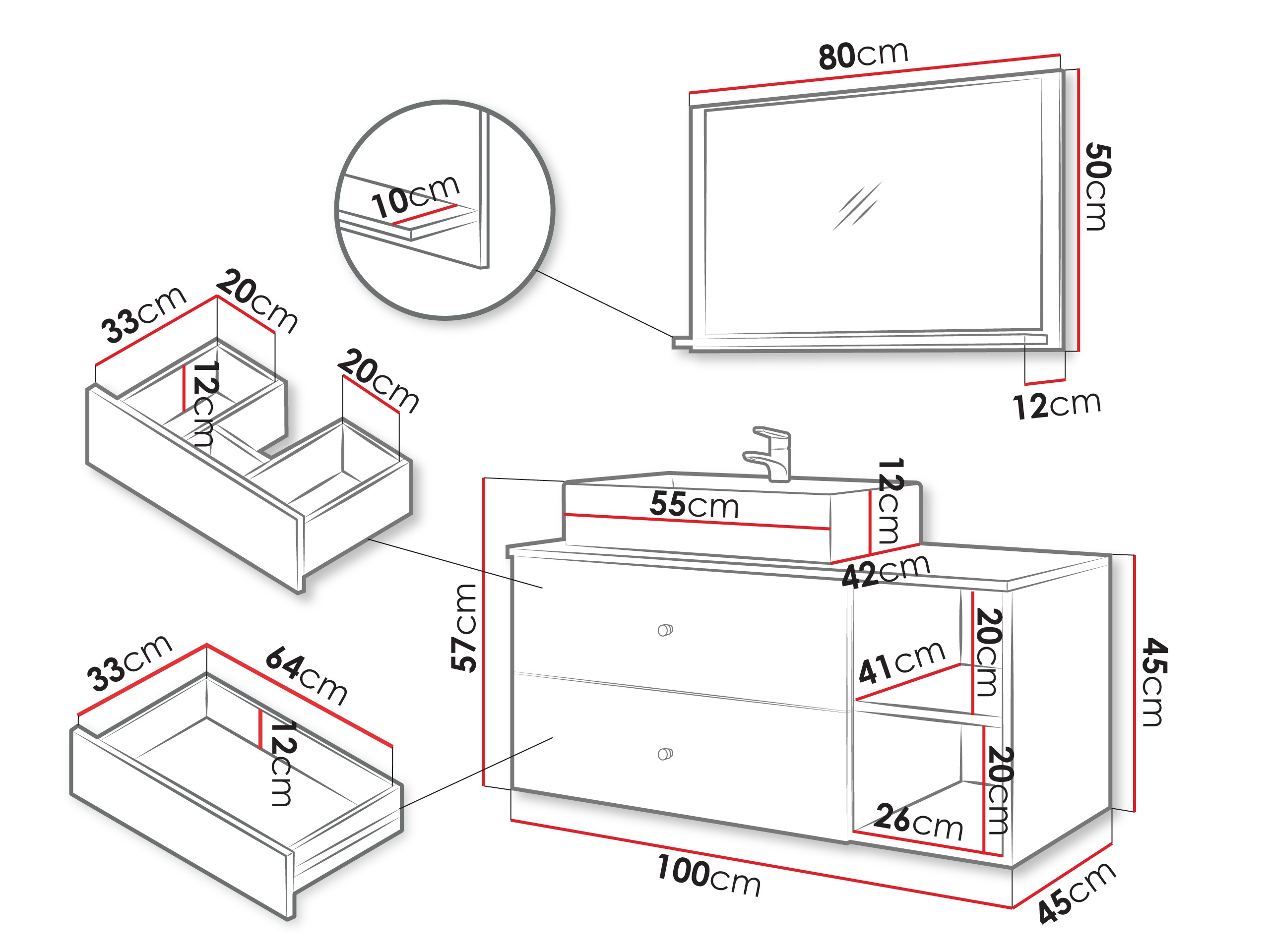 Afmetingen wastafelmeubel: