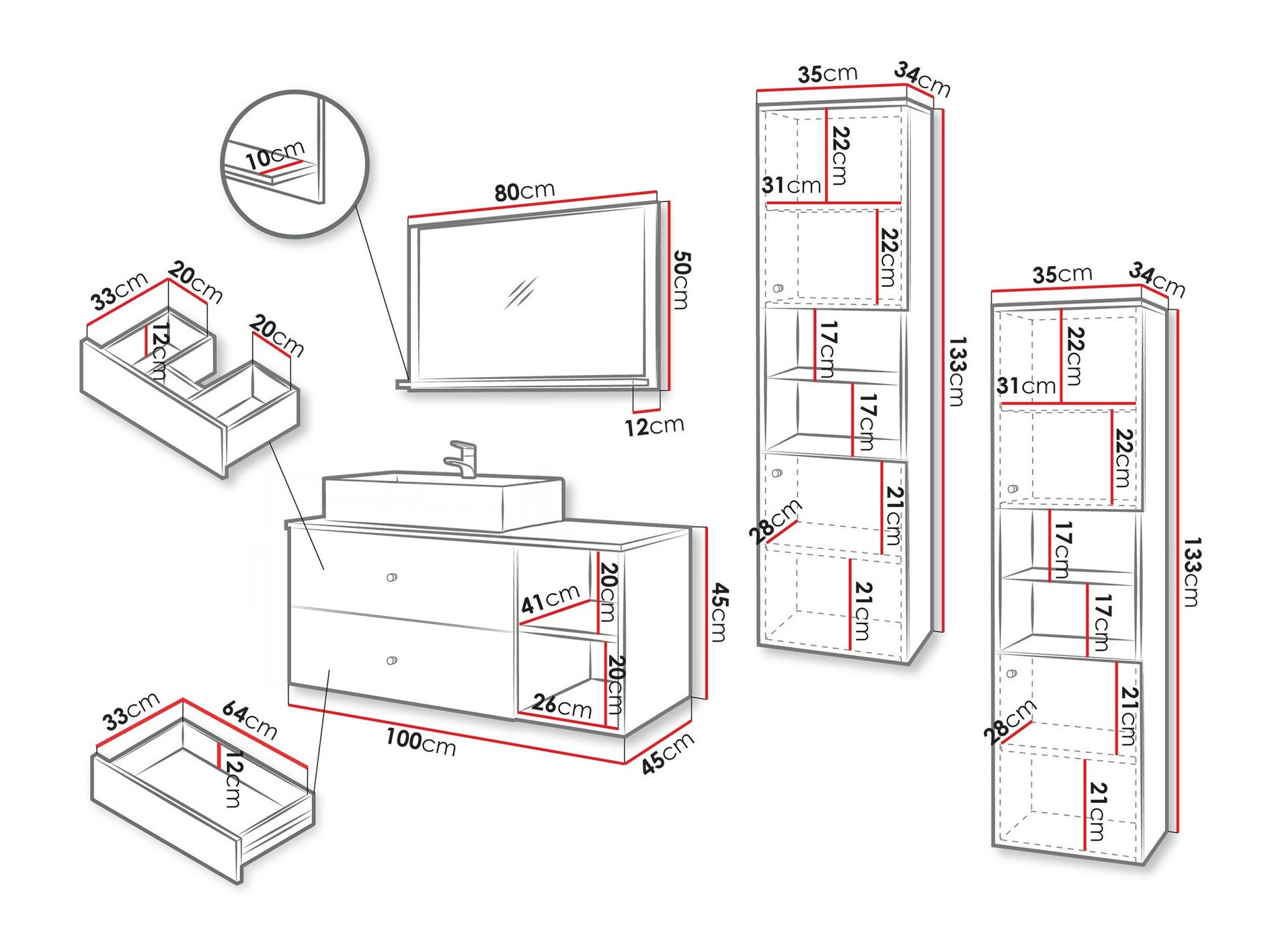 133 x 35 x 45 cm