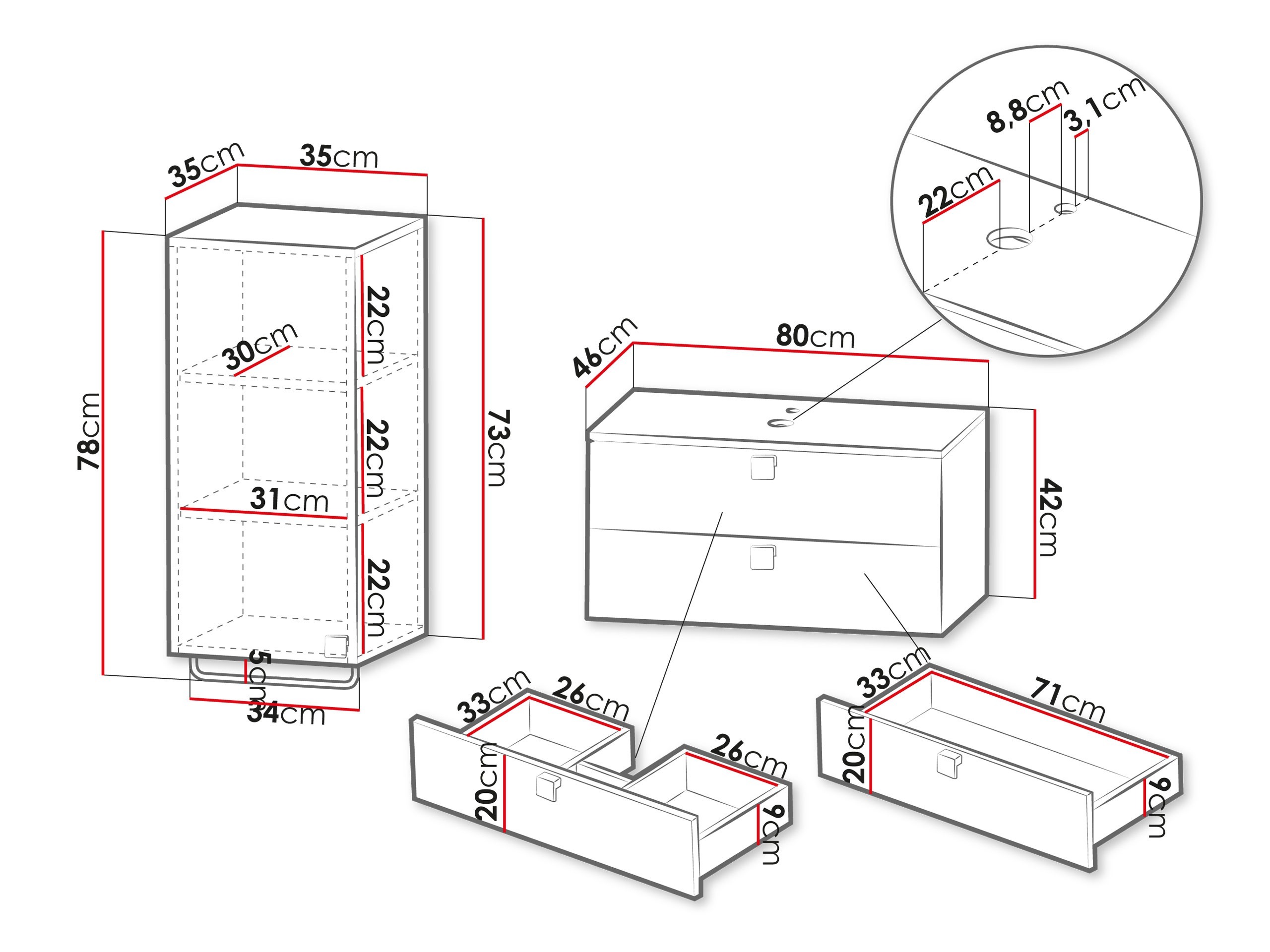 42 cm  80 cm  46 cm