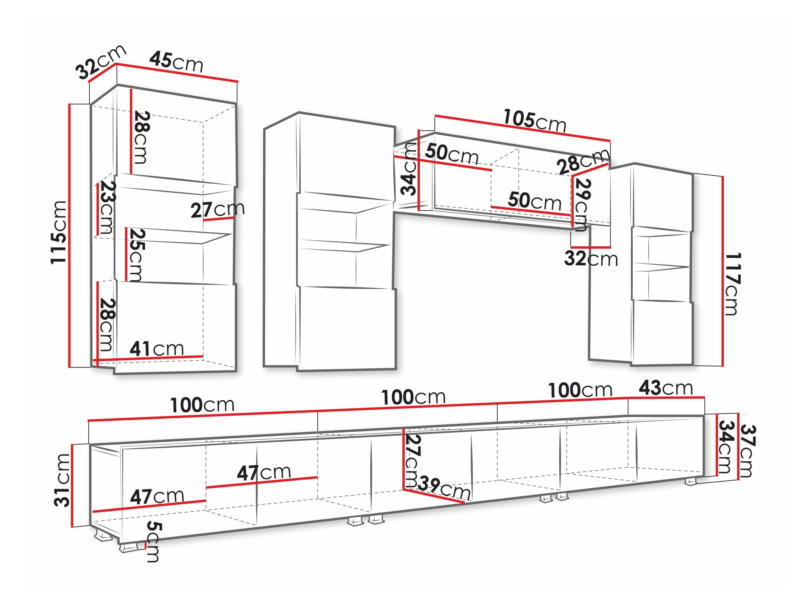 117 cm  45 cm  32 cm