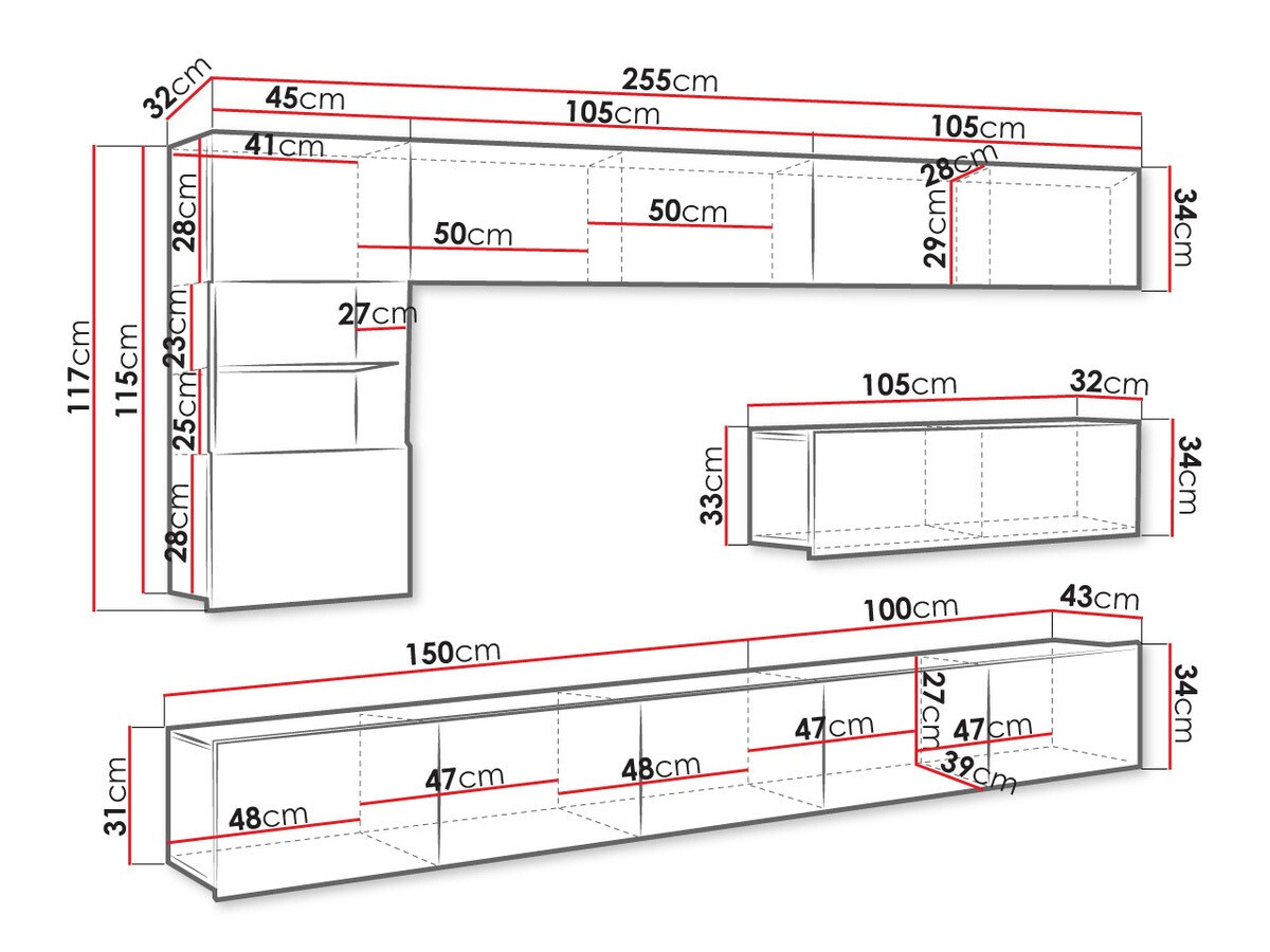 34 x 105 x 32 cm