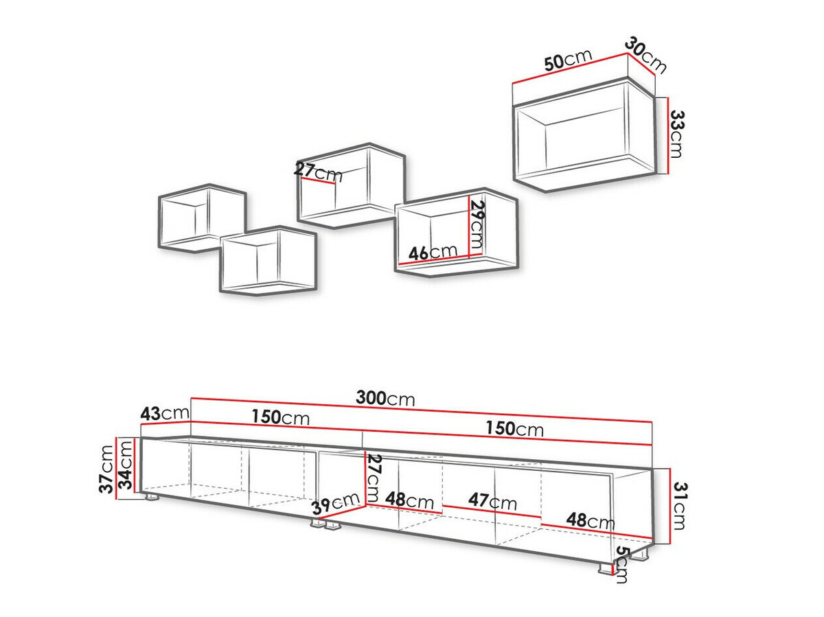 37 x 300 x 43 cm