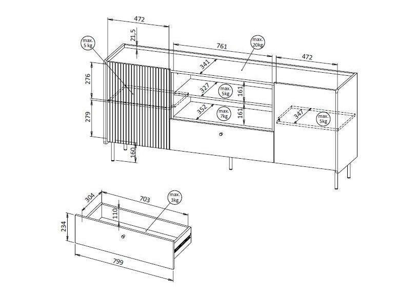 Maximaal draagvermogen van de lade: