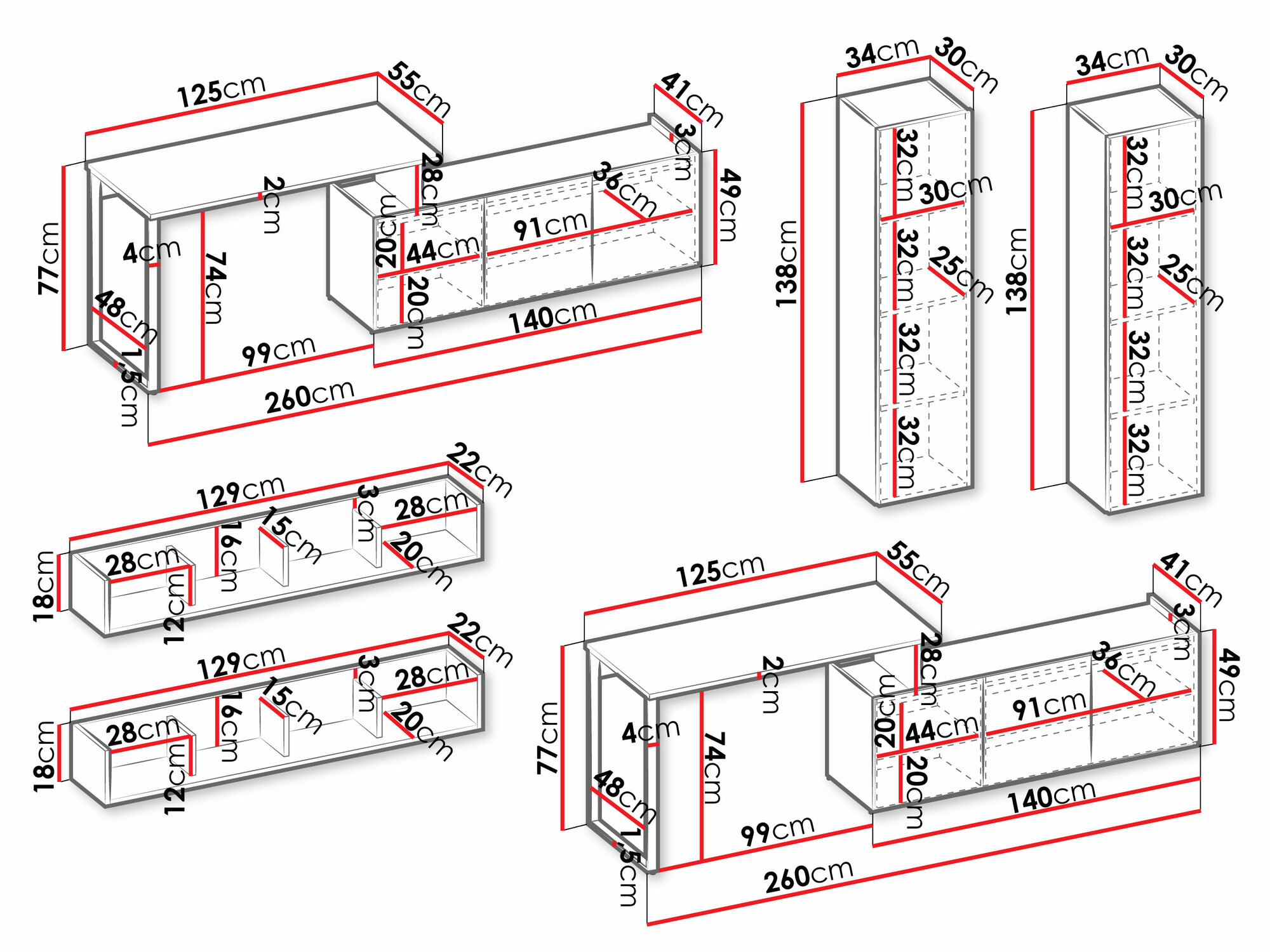 138 x 34 x 30 cm