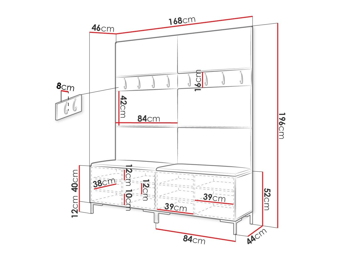 16 x 84 x 8 cm