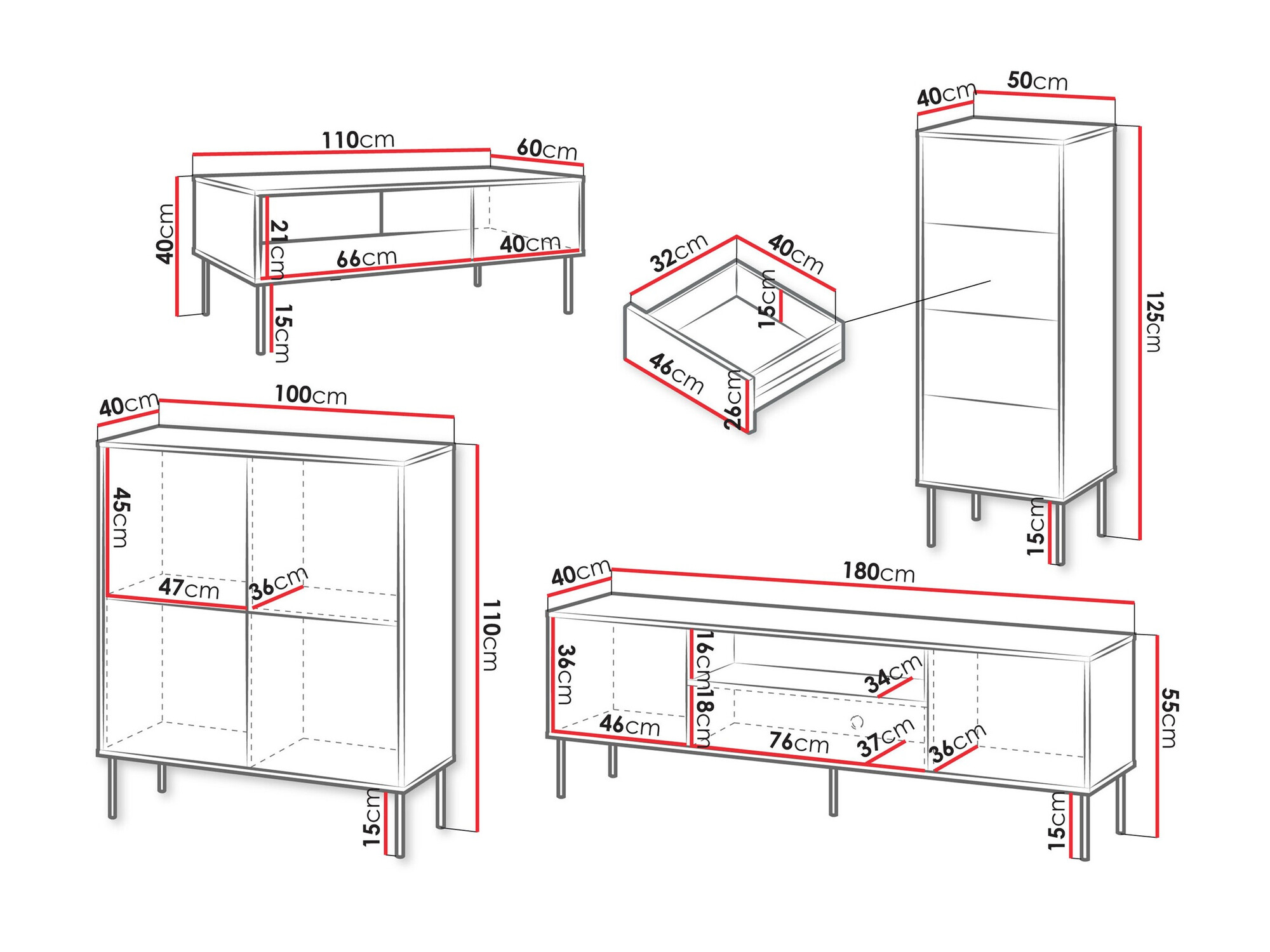 55 x 180 x 40 cm