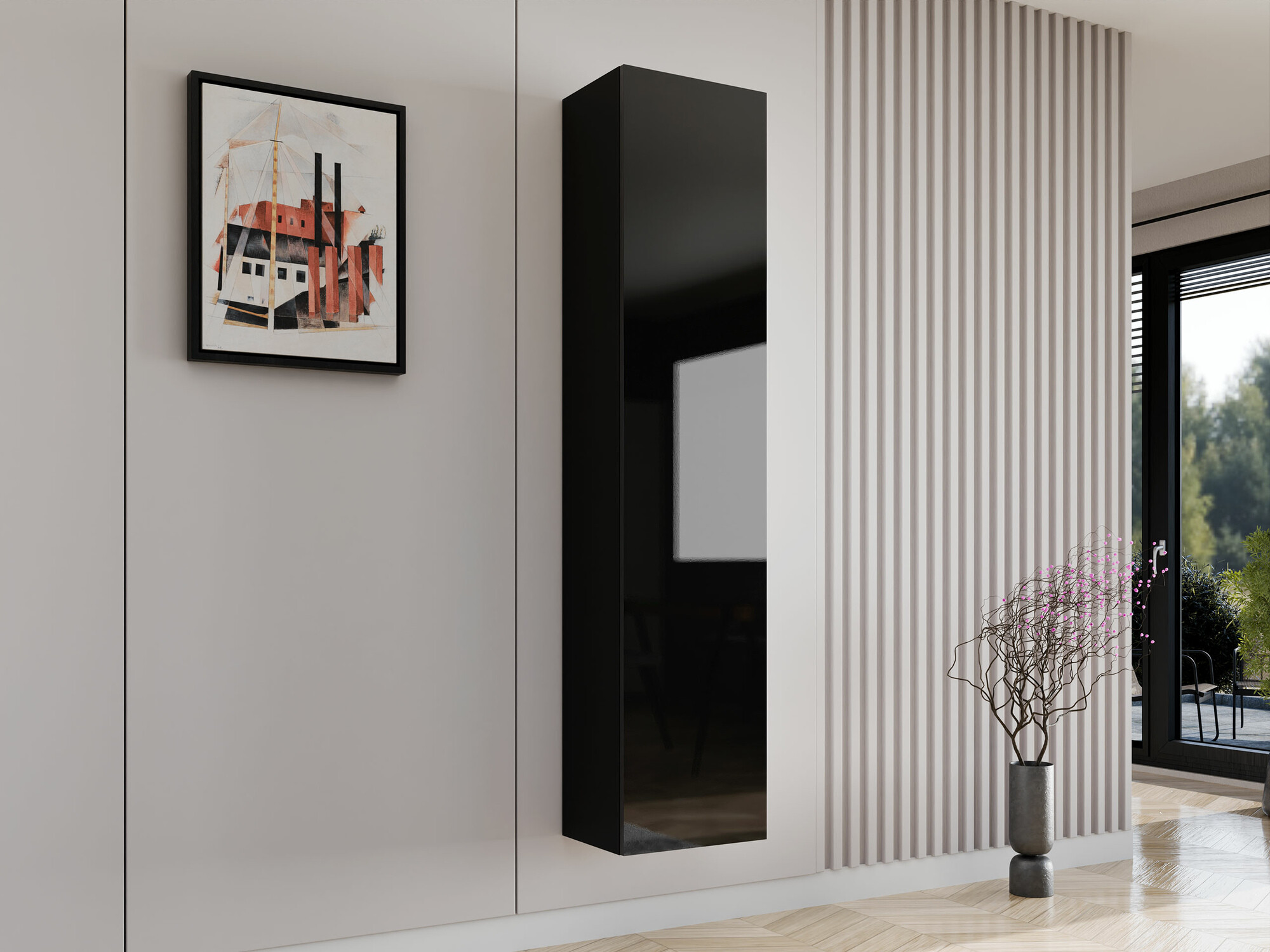 Wandplank Venenou 128 (Zwart + Glanzend zwart)