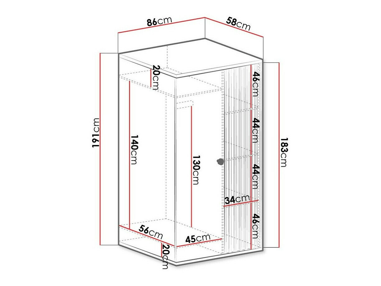 Perfecte staat van het materiaal Eenvoudige montage en deuren werken vanaf de eerste keer Het past heel goed, en over het algemeen is het een zeer goede prijs-kwaliteitverhouding. In ons geval is door de ligging van de kast het achterste deel gedeeltelijk zichtbaar en niet zo mooi als de voorkant en zijkanten. Houd er rekening mee afhankelijk van de locatie, want als je hem tegen de muur plaatst, is hij helemaal niet te zien.