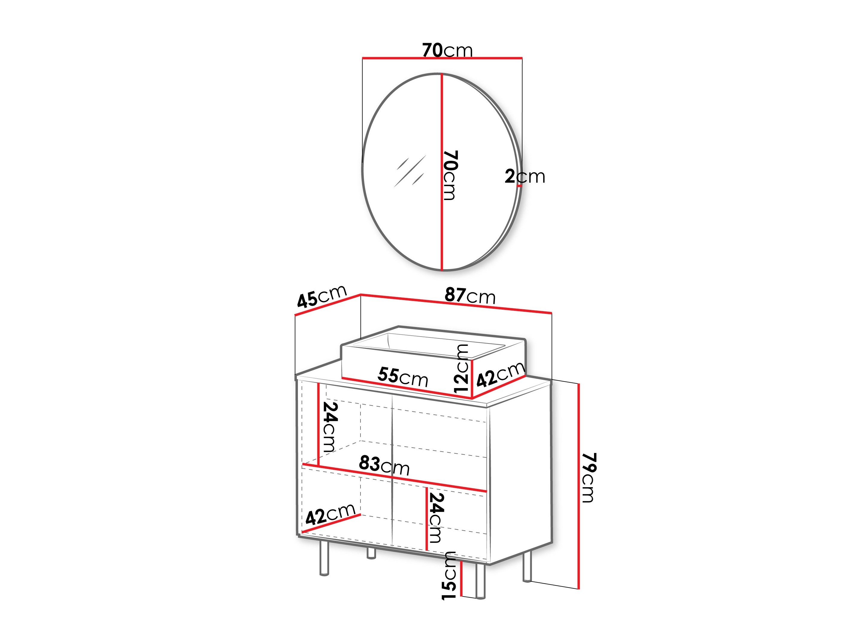 Afmetingen wastafelmeubel: