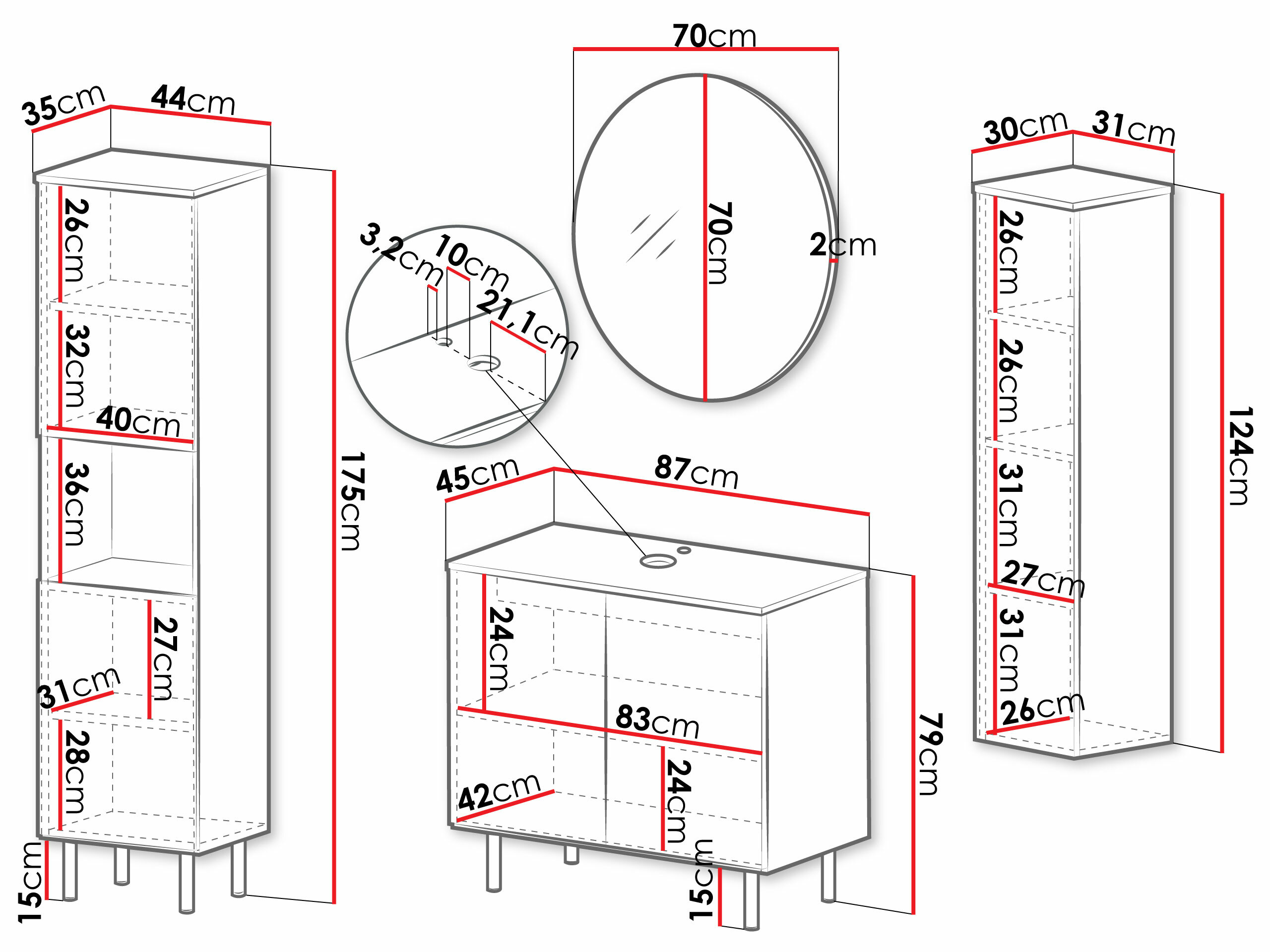 175 x 44 x 35 cm