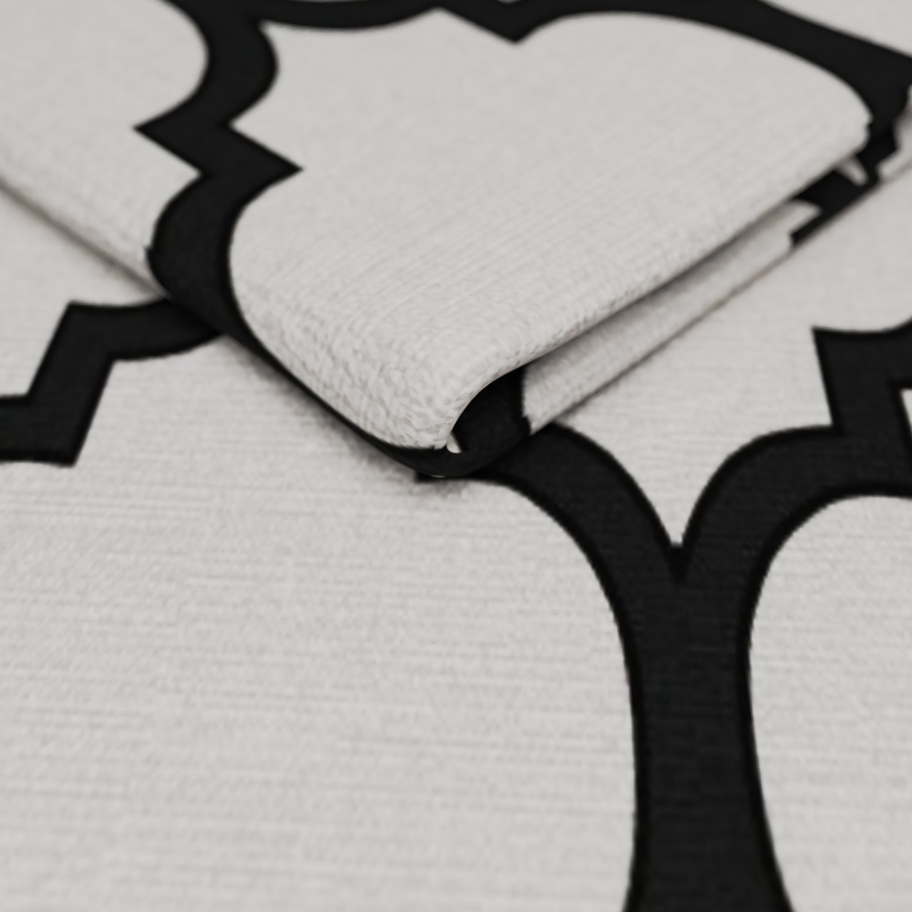 "Bella" is een zachte en aangenaam aanvoelende stof van 100% polyester. Het wordt gekenmerkt door een patroon in Marokkaanse stijl. De stof kan worden gereinigd met milde stoffeermiddelen. Niet nat wassen of bleken.