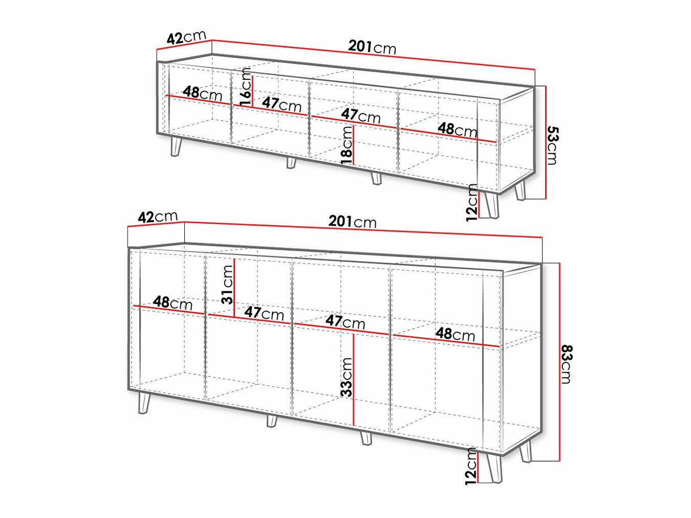 53 x 201 x 42 cm